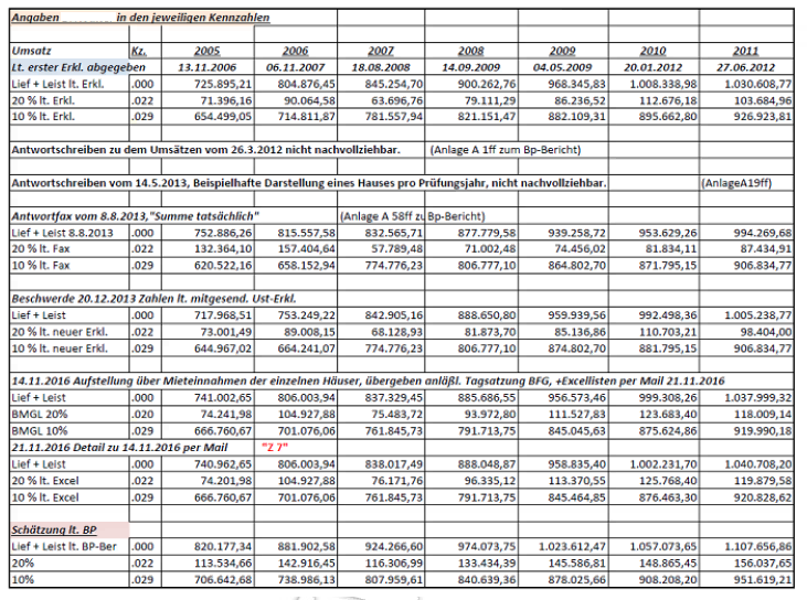 - Verbindung zwischen Mietzinslisten und Steuererklärungen ist nicht herstellbar, Umsatzzahlen sind nicht nachvollziehbar ;