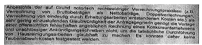 - Gegenverrechnung mit Mietforderungen (die BF ließ leistende Firmen bzw. Arbeiter in ihren Objekten wohnen, wobei diese keine Miete zahlen mussten) ist nicht nachvollziehbar, ebenso Bezahlen durch "Materialüberrechnung".