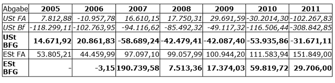 Die Umsatzsteuer wird für das Jahr 2011 festgesetzt mit | -31.671,11 € |