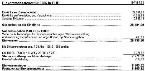Abgezogen wurden aber für 2002 Euro 3323,95, für 2003 Euro 3233,92, für 2004 Euro 3091,10 für 2005 Euro 3065,80 und für 2006 Euro 3370,40.
