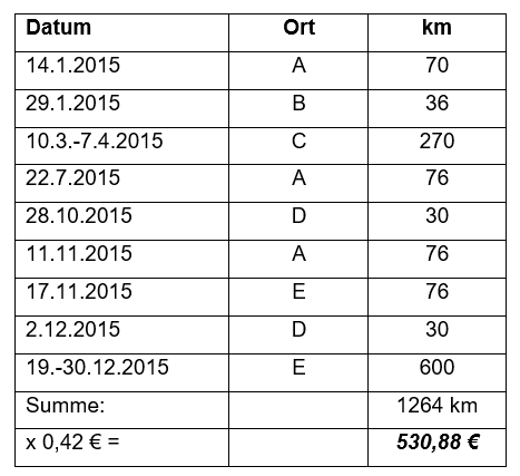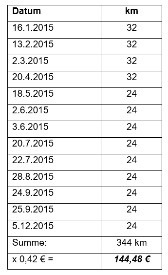 Aufgrund des vom Bf. vorgelegten Arbeitszeitnachweises 2015 ergeben sich für ärztliche Fahrten 1264 km, die im Zusammenhang mit der eigenen Behinderung stehen.