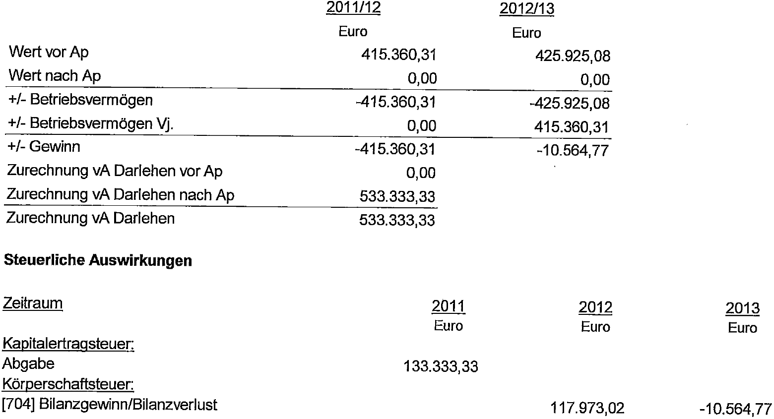 Die Gewährung des streitgegenständlichen Darlehens an die P GmbH erfolgte am 28.10.2011. Die steuerliche Nichtanerkennung des der P GmbH gewährten Darlehens in der Außenprüfung hatte steuerliche Folgewirkungen, indem durch die Ausbuchung des Darlehens inklusive der diesbezüglich aktivierten Zinsen im Ergebnis die Zinserträge aus dem Darlehen für die Wirtschaftsjahre 2011/12 und 2012/13 storniert wurden. Daraus resultierten jeweils niedrigere Einkünfte in den Körperschaftsteuerbescheiden 2012 und 2013, weshalb die für 2012 bzw. 2013 festgesetzte Körperschaftsteuer niedriger wurde. Die Ausbuchung des Darlehensbetrages ohne Zinsen war erfolgsneutral. Die (handelsrechtliche) Passivierung der KESt im Wirtschaftsjahr 2011/12 ist durch die Außenprüfung steuerlich sofort wieder neutralisiert worden, sodass sie keine Auswirkung auf den Körperschaftsteuerbescheid 2012 hatte.