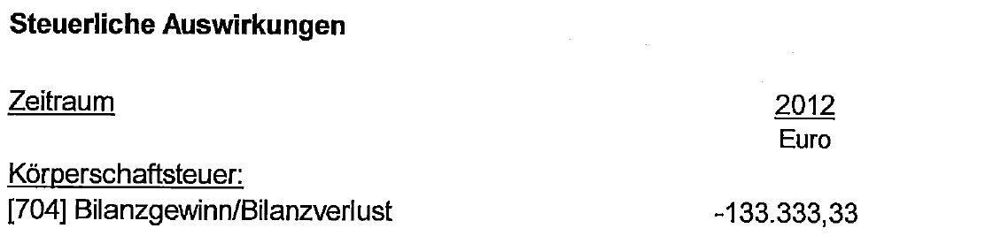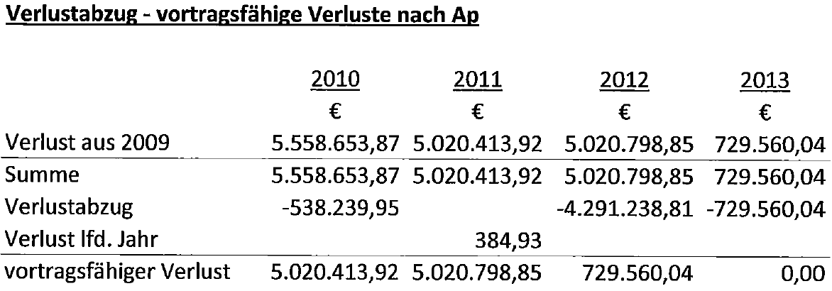 Verlustvortrag vor der jeweiligen Veranlagung | 5.020.798,85 € | 718.039,80 € |