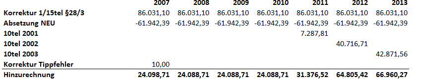 Außerdem gab es noch Korrekturen betreffend Instandsetzungszehntel in den Jahren 2011, 2012 und 2013.