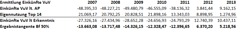 Auf Basis der Außenprüfung wurde das folgende steuerliche Ergebnis der Miteigentümerschaft festgestellt: