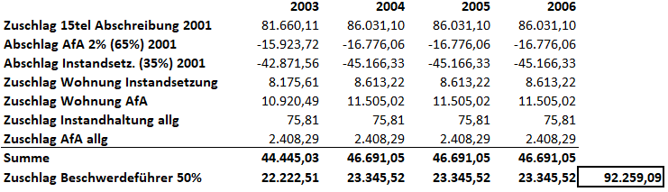 Außerdem wurden im Jahr 2001 Instandsetzungsaufwendungen iHv EUR 3.975,40 getätigt. Diese wurden ab dem Jahr 2001 über zehn Jahre verteilt mit EUR 397,54 abgeschrieben.