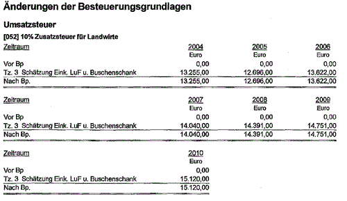 Für die Jahre 2004 bis 2010 erfolgen Erstveranlagungen der Umsatzsteuer.