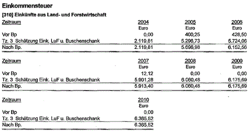 - Einkommensteuerbescheide für die Jahre 2005 bis 2010.