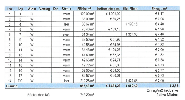 lfn | Top | Widm | Status | Fläche m² | Nettomiete pro Monat | fiktive Miete | |