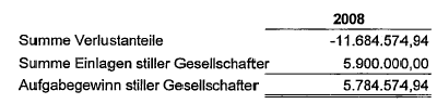 Die gegenständliche Gesellschaft ist somit nicht mit Konkurseröffnung aufgelöst. Die RZ 5994 b der ESt-Richtlinien wurde erst in der 11. Fassung beginnend ab 21.12.2010 veröffentlicht und kann daher nicht rückwirkend zu Lasten der Abgabepflichtigen für den Veranlagungszeitraum 2008 angewendet werden. Andere Hinweise darauf, dass die stille Gesellschaft als aufgelöst zu betrachten gewesen wäre wurden von der Finanzverwaltung nicht vorgelegt. Der Verweis auf die unternehmensrechtliche Literatur alleine reicht nicht, da die abgabenrechtlichen Folgen daraus nicht hinreichend abgeleitet sind. Erstens wäre darauf einzugehen, wie sich die zit. Vertragsbestimmung, die Gesellschaft ist bei Konkurs nicht aufgelöst auf die Rechtsverhältnisse zueinander auswirkt und ob dadurch tatsächlich das negative Kapitalkonto des stillen Gesellschafters ersatzlos wegfällt. Gem. § 24 Abs. 2 ESTG ist jener Betrag des negatives Kapitalkontos zu erfassen, den der Mitunternehmer nicht auffüllen muss. Nun bewirkt § 10 Abs. 3 des Vertrages, dass die Gesellschaft nicht aufgelöst ist und somit bestand 2008 noch die Möglichkeit, dass der stille Gesellschafter das Kapitalkonto mit künftigen Gewinnen zu verrechnen hätte, was einer Auffüllung gleich kommt. Darüberhinaus wurde in der Bescheidbegründung nicht dazu Stellung genommen, was mit jenen Ergebnistangenten geschieht, die gem. § 186 Abs. 2 für die Beteiligung des stillen Gesellschafters am Gewinn und Verlust aus schwebenden Geschäften entstehen. Ist also gemeint, dass allfällige spätere Gewinne nicht steuerbar wären? Darüberhinaus hat auch die Finanzverwaltung dem Abgabepflichtigen ihre Meinung über den aufrechten Bestand der stillen Gesellschaft mit Bescheid vom 3.8.2011 zur Kenntnis gebracht, in dem sie die Erklärung der Einkünfte von Personengesellschaften für das Jahr 2010 einfordert. Diese Einforderung liegt nach dem Tag der Besprechung vom 26.1.2011 und erfolgte somit im Kenntnisstand dieser Besprechung durch die Finanzverwaltung...