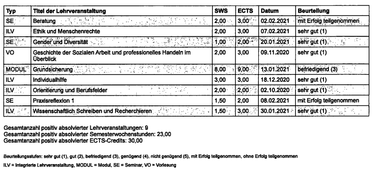 Weiters eine Bestätigung des Studienerfolgs für das Sommersemester 2021 vom 15.11.2021: