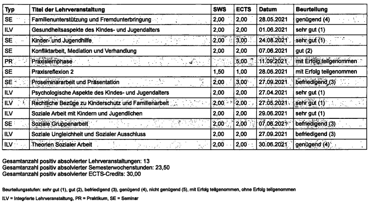 Es wurde auch eine Inskriptionsbestätigung für das Wintersemester 2021/22 vorgelegt.