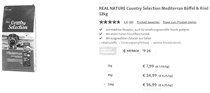 (abgebildet ist die Sorte Mediterran Büffel und Rind, nicht aber Ente oder Känguru).