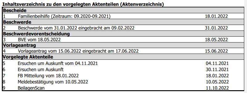 Mit Mitteilung über den Bezug der Familienbeihilfe vom 03. Mai 2022 zu ***18*** wurde meiner Tochter ***2*** ***5*** nunmehr die Familienbeihilfe Oktober 2021 bis Juni 2023 zuerkannt- warum dies nicht in Form eines Bescheides ergehen kann wie in einem Rechtsstaat zu erwarten, sondern "nur" in Form einer nicht anfechtbaren oder der Rechtskraft zugängigen Weise der belanglosen Mitteilung- ist wenn auch polemischer Natur, die Erste Ungerechtigkeit.