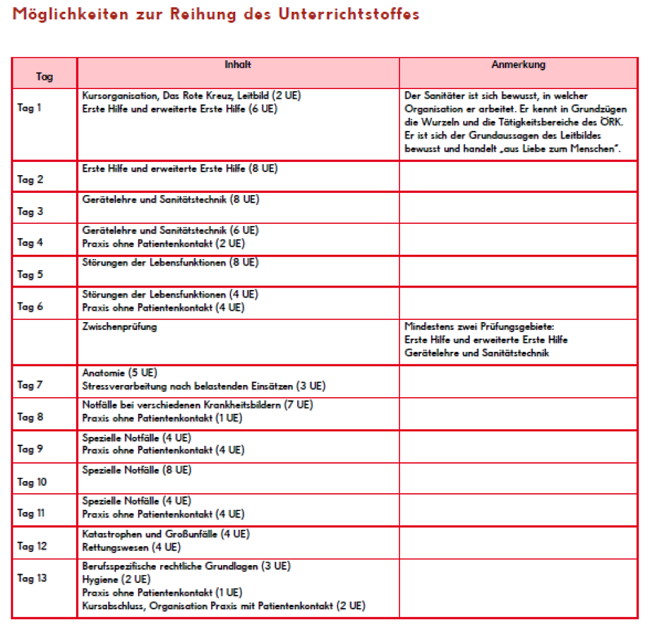 Die Ausbildung zum/zur Rettungssanitäterin wird als Tageskurs angeboten. Im Stundenplan ist das Berufsmodul, das Voraussetzung für die berufsmäßige Ausübung der Tätigkeit als Rettungs- oder Notfallsanitäterin ist, integriert.