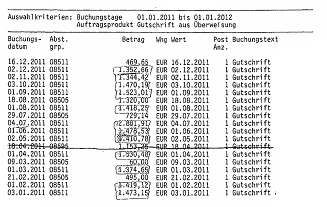 Das nachfolgende Schaubild zeigt den dem Schreiben vom 27.01.2017 beigelegten Bankkontoauszug vom 24.01.2017 als Beweis dafür, dass der Bf. nicht mehr Nettolohn überwiesen bekommen hätte. Die Beträge in den handschriftlichen Kästen sind die auf das Konto des Dienstnehmers Bf. überwiesenen lohnsteuerpflichtigen Bezüge: