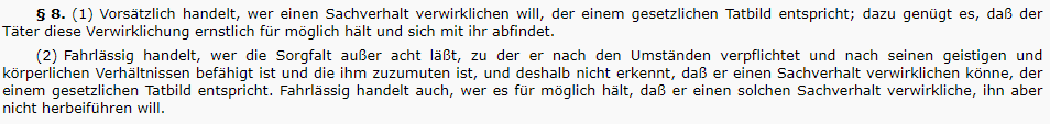 § 8 FinStrG in der Fassung des BGBl. Nr. 335/1975 enthält die nachfolgend zitierten Bestimmungen zu den Begriffen "Vorsatz" und "Fahrlässigkeit":