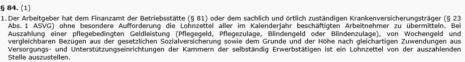 § 84 EStG 1988 in der Fassung des BGBl. I Nr. 58/2010, betrifft Lohnzettel und enthält in Abs. 1