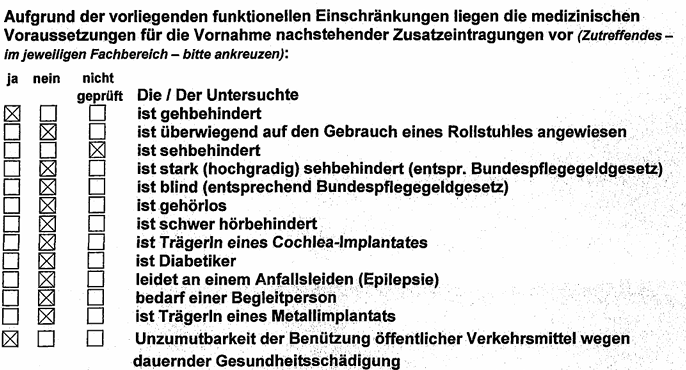Das nachfolgende Schaubild zeigt die Grundlage für den Zusatzeintrag im Behindertenausweis der Bf. aus dem Jahr 2010: