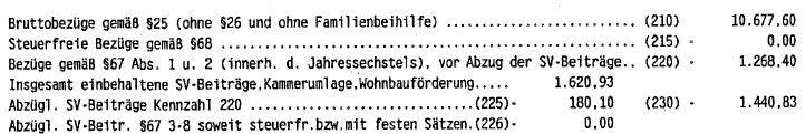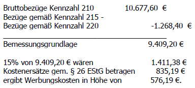 § 2 der Verordnung des Bundesministers für Finanzen über die Aufstellung von Durchschnittssätzen für Werbungskosten von Angehörigen bestimmter Berufsgruppen StF: BGBl. II Nr. 382/2001 (V) bestimmt, dass die Bemessungsgrundlage für die Ermittlung der Pauschbeträge die Bruttobezüge abzüglich der steuerfreien Bezüge und abzüglich der sonstigen Bezüge, soweit diese nicht wie ein laufender Bezug nach dem Lohnsteuertarif zu versteuern sind (Bruttobezüge gemäß Kennzahl 210 abzüglich der Bezüge gemäß Kennzahlen 215 und 220 des amtlichen Lohnzettelvordruckes L 16), sind.