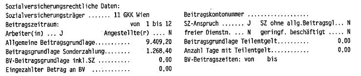Aus der nachfolgenden Ablichtung ist der "Lohnzettel und Beitragsnachweis" für das Jahr 2014 ersichtlich: