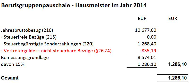 Schätzung von Werbungskosten in Höhe der Berufsgruppenpauschale "Hausbesorger"!