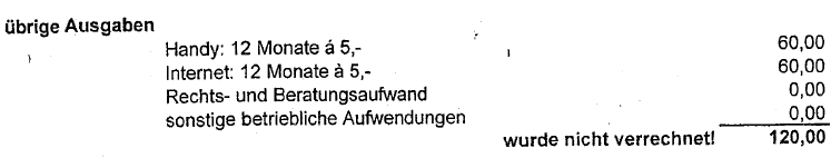 Betreffend die Telefon- und Internetkosten in Höhe von 120 € führte die Bf. ins Treffen, diese in der ursprünglichen Aufstellung der Abgabenberechnung nicht berücksichtigt zu haben.