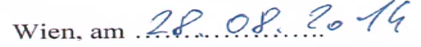 Mit der Mail der steuerlichen Vertretung vom 30.10.2020 ist die nachfolgend abgelichtete (weitere) Bestätigung des Ehegatten der Bf. vom 28.8.2014 zum in Rede stehenden Streitpunkt an das BFG nachgereicht worden: