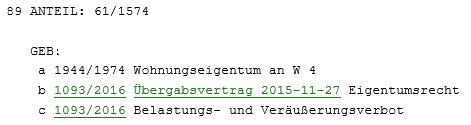 Der Wohnsitz der Bf. ist die heutige Eigentumswohnung des Sohnes der Bf., bezüglich dieser die nachfolgend abgelichteten Eintragungen im Eigentümerblatt und Lastenblatt des Grundbuchs ersichtlich: