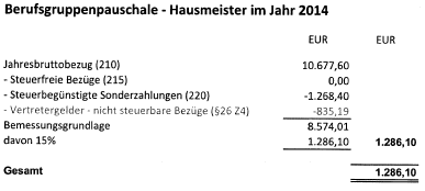 In Streit steht die nachfolgend abgelichtete "Berufsgruppenpauschale-Hausmeister 2014":