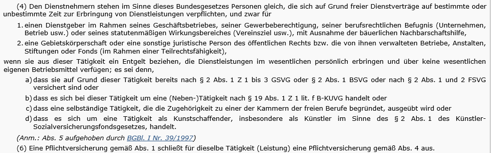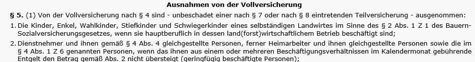 Aus der nachfolgenden Ablichtung ist der folgende Text des § 5 ASVG BGBl. Nr. 189/1955 in der Fassung des BGBl. II Nr. 434/2013 ersichtlich: