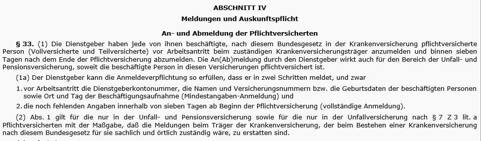 Aus der nachfolgenden Ablichtung ist der Text des § 33 ASVG BGBl. Nr. 189/1955 in der Fassung des BGBl. I Nr. 31/2007 ersichtlich: