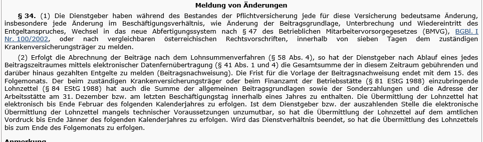 Aus der nachfolgenden Ablichtung ist der Text des § 34 ASVG BGBl. Nr. 189/1955 in der Fassung des BGBl. I Nr. 132/2005 ersichtlich:
