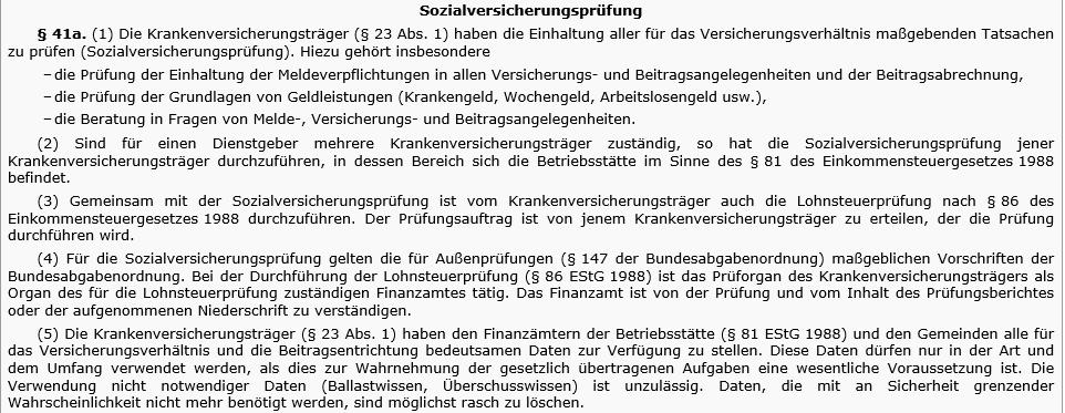 Aus der nachfolgenden Ablichtung ist der Text des § 41a ASVG BGBl. Nr. 189/1955 in der Fassung des BGBl. I Nr. 83/2009 zu entnehmen: