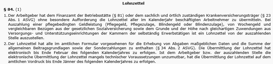 Die durch die grundsätzliche Verpflichtung der Übermittlung auf elektronischem Weg bedingte Verknüpfung der Lohnzettel mit der Sozialversicherungsnummer des Arbeitnehmers bedeutet, dass das Finanzamt die Veranlagung unter Ansatz der elektronisch gespeicherten Lohnzetteldaten durchführen kann und diese nicht nochmals eingeben muss. Jedem Arbeitgeber ist es z.B. im Streitjahr 2014 somit freigestanden, die Lohnzettel, in denen zugleich auch die sozialversicherungsrechtlichen Beitragsgrundlagen erfasst wurden, WAHLWEISE dem Betriebsstätten-Finanzamt oder dem zuständigen Krankenversicherungsträger zu übermitteln.