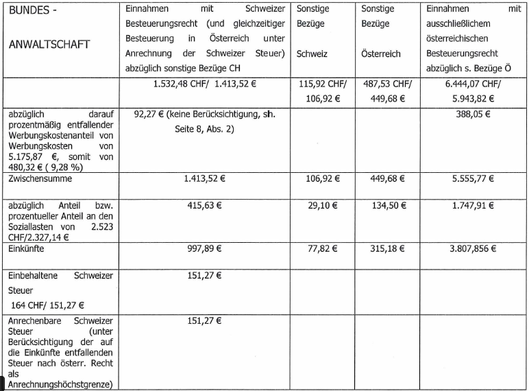 Vom Finanzamt wurden diese wieder mit 100 % angesetzt; uE sind nur jene Einkünfteteile anzusetzen, die in der Schweiz erarbeitet wurden.