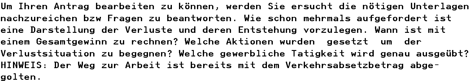 Unter Pkt. 2 des Vorhalts wurde die Bf. dazu aufgefordert, eine Stellungnahme zum Vorhalt der Amtsvertretung im Vorlagebericht abzugeben sowie die Beantwortung aller bislang unbeantwortet gebliebenen Vorhalte der Amtsvertretung nachzureichen.