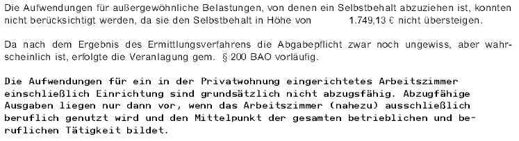Angesichts der Bestimmung des § 20 Abs.1 Z. 2 lit.d EStG 1988 (Arbeitszimmer) und der dem Vorhalt beigelegten Berufsbeschreibung des AMS erging unter Pkt. 1 des Vorhalts das an die Bf. adressierte Ersuchen um Nachreichung