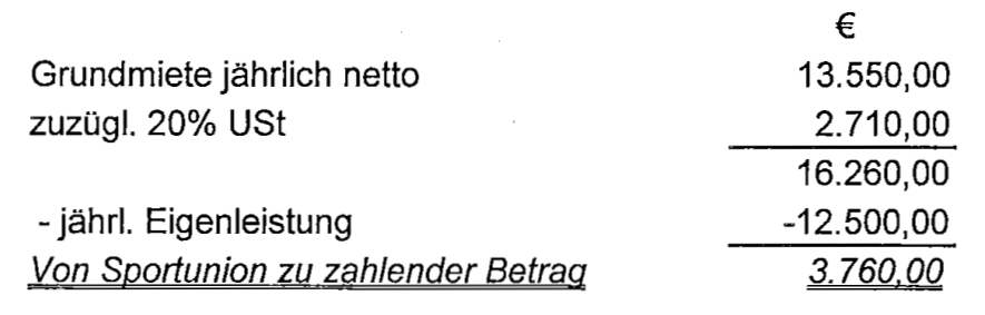 Bei dieser Berechnung sei erst ab dem Jahre 2015 eine Bezahlung der Miete durch den Sportverein zu tätigen.