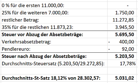 Die Einkünfte aus nichtselbständiger Arbeit werden daher wie folgt ermittelt:
