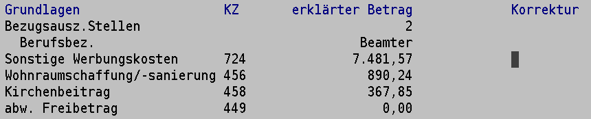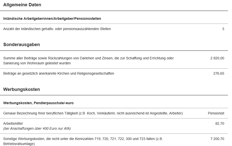 "Arbeitsmittel": 82,70 €, "sonstige Werbungskosten": 7.200,70 €: