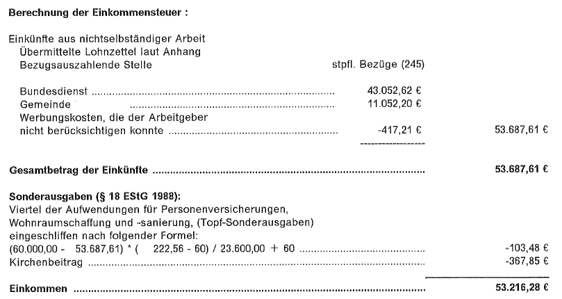 Die Topf-Sonderausgaben werden ab 1996 nur zu einem Viertel berücksichtigt und bei einem Gesamtbetrag der Einkünfte von mehr als 36.400 € überdies nach der oben angeführten Formel eingeschliffen.
