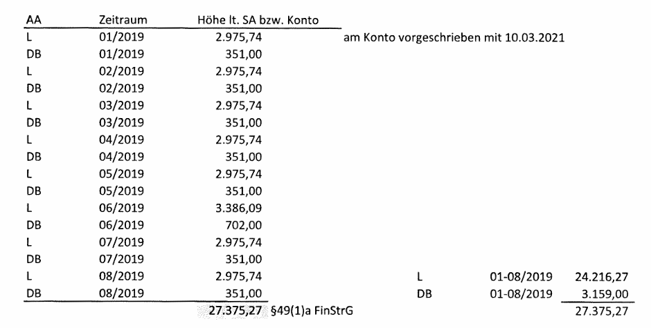 Lohnsteuer 1-8/2019 in der Höhe von € 24.216,27
