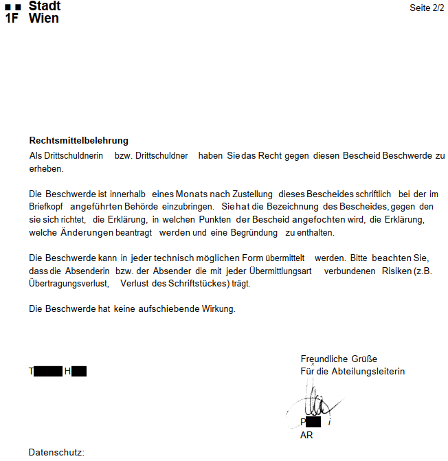 Der Vorlageantrag ist innerhalb eines Monats nach Zustellung dieser Beschwerdevorentscheidung schriftlich bei der im Briefkopf angeführten Behörde einzubringen.