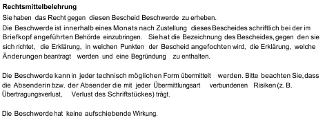 Rechtsmittelbelehrung