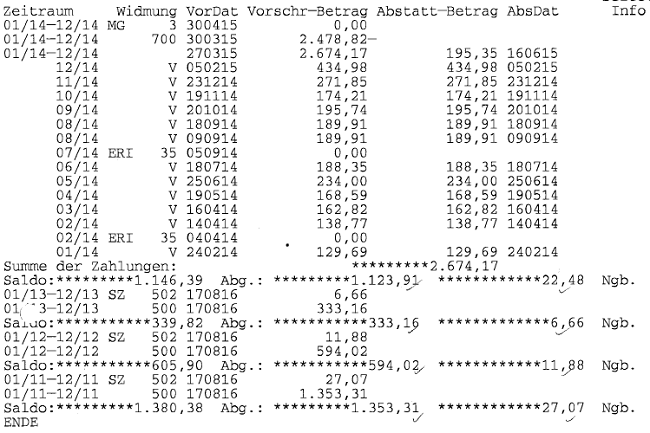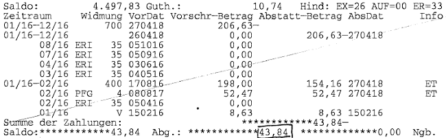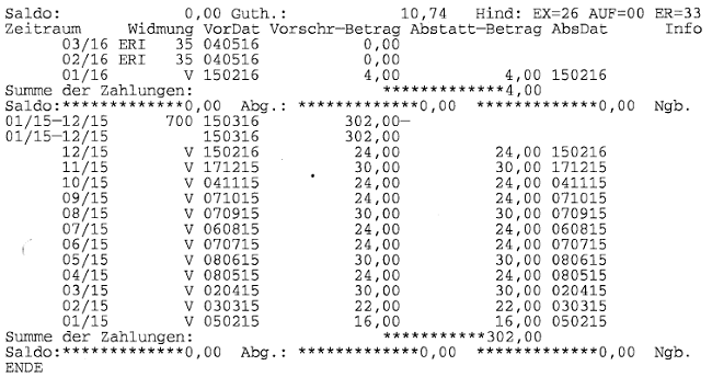 Der Rückstand setzt sich laut Abgabenkonto wie folgt zusammen: