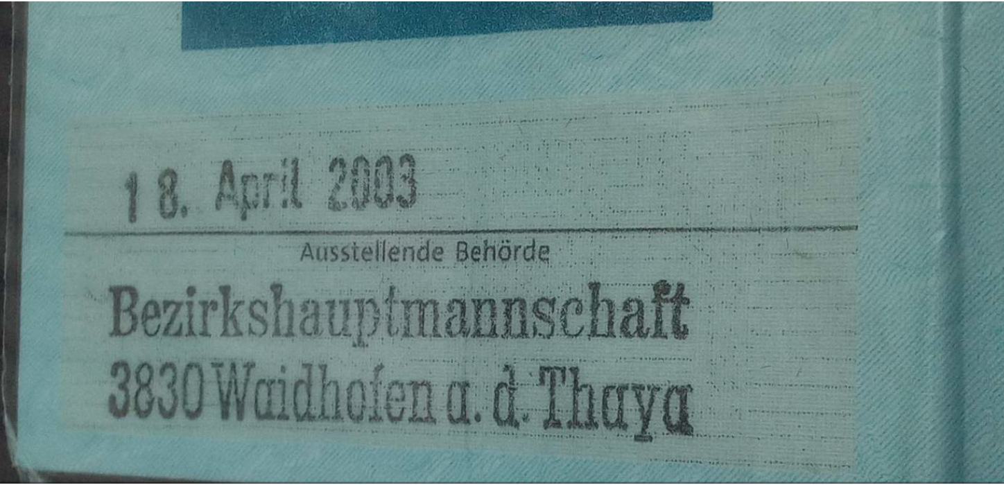 Des Weiteren konnte die erkennende Behörde beim Vergleich der Anzeigefotos - welche der Behörde natürlich in Farbe vorliegen - mit den Scans des Ausweises, welche im Zuge der persönlichen Vorsprache am 12.09.2022 durch die Bezirkshauptmannschaft Waidhofen/Thaya erfolgten, feststellen, dass es sich hierbei nicht um ein und denselben Ausweis handeln kann, zumal die Ecken der Laminierung Unterschiede sowohl in der Form als auch den Gebrauchsspuren aufweisen. Auch ist die Folierung an der unteren Seite am Anzeigefoto schmäler als auf dem vorlegten Ausweis.
