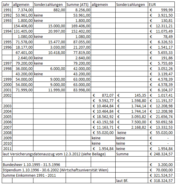 Zuletzt wurden noch die Einkunftsquellen und die Änderungen der Besteuerungsgrundlagen dargestellt, welche sich aus den obigen Feststellungen ergaben.