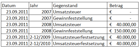 Der Betriebsprüfungsbericht vom 22.9.2011 hielt Folgendes fest: