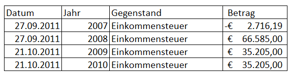 Es ergaben sich folgende steuerlichen Auswirkungen: